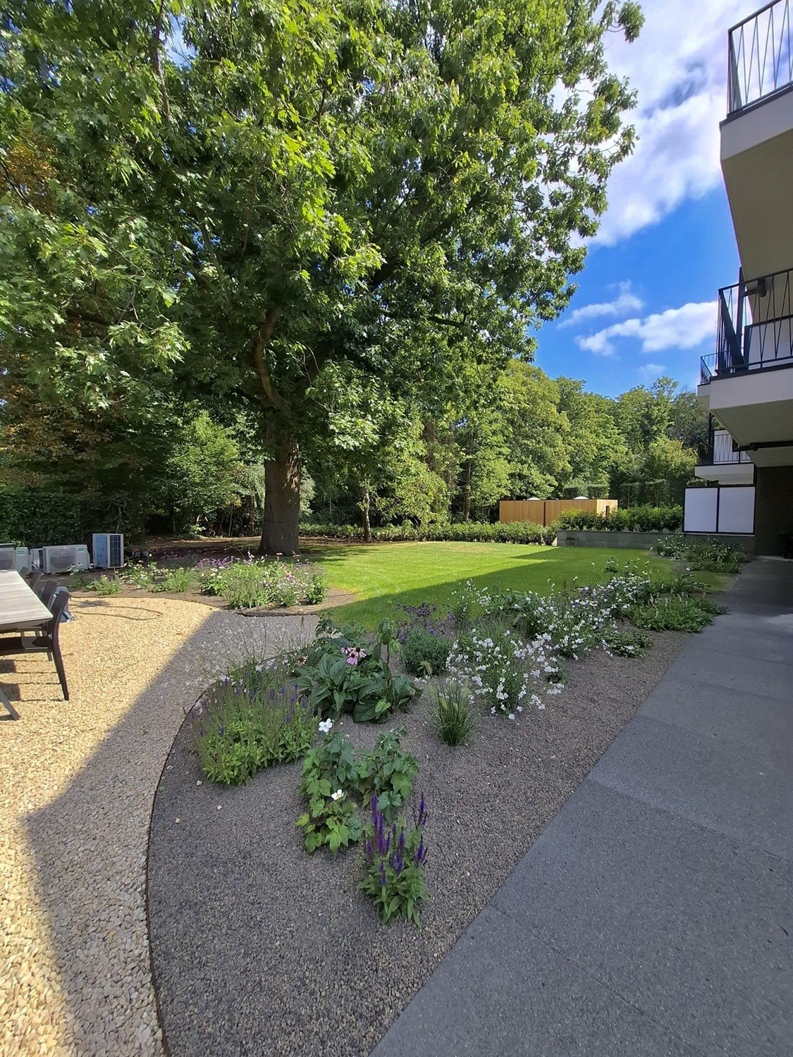 Deze bedrijfstuin hebben we omgetoverd tot een plaatje waar je uw klanten in een fijne omgeving kan ontvangen.