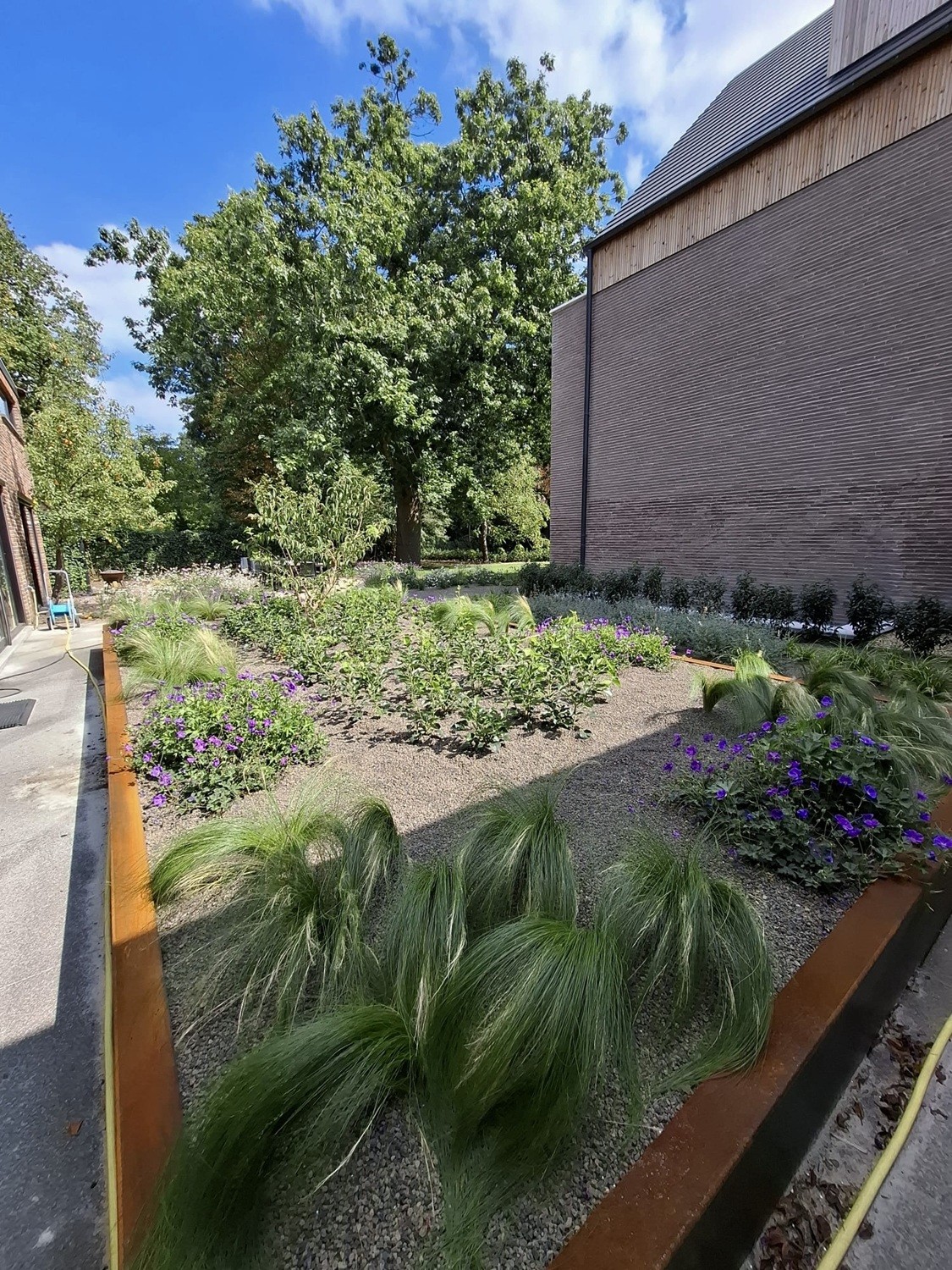Strakke aanplanting in cortenstaal bak